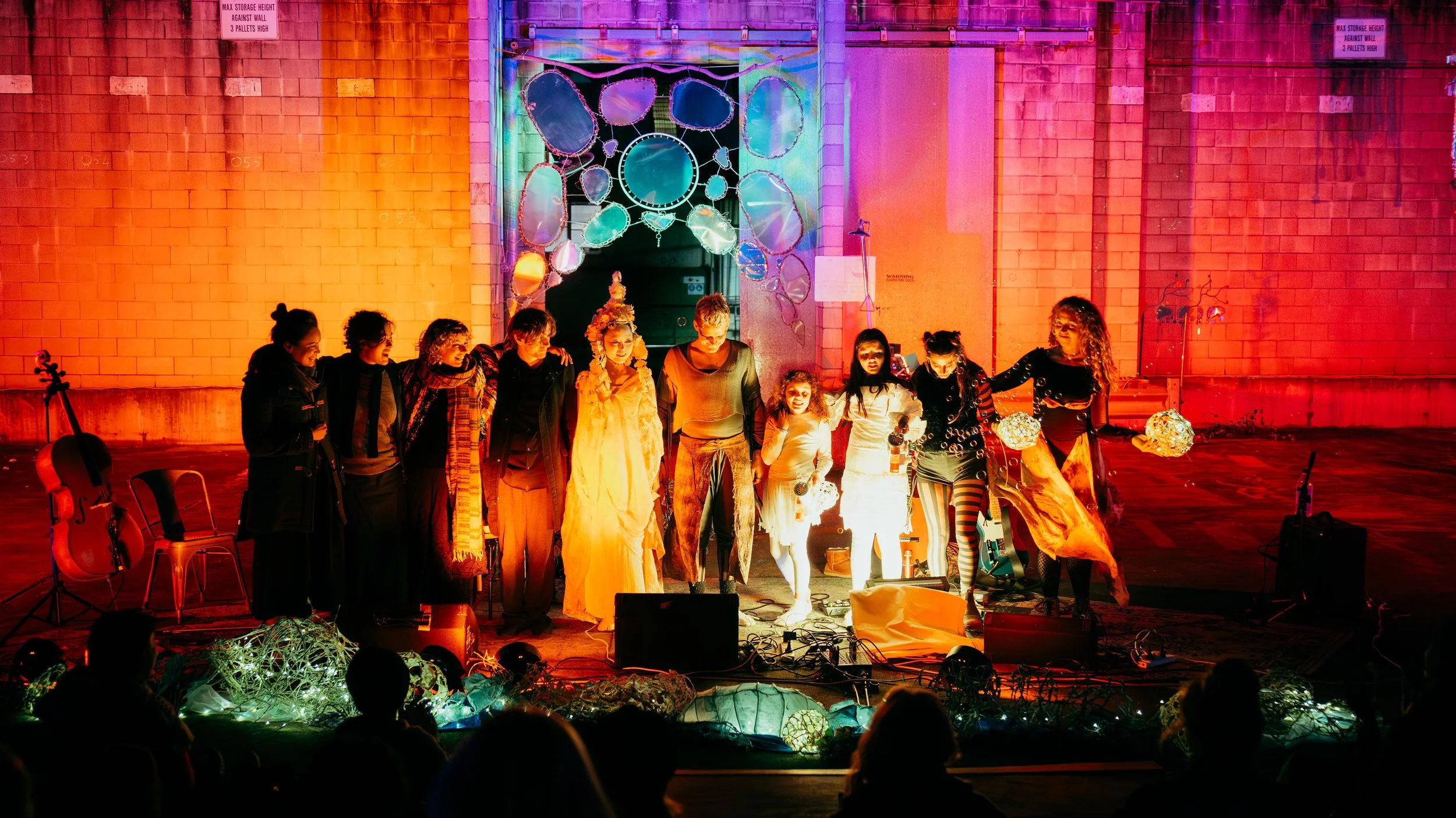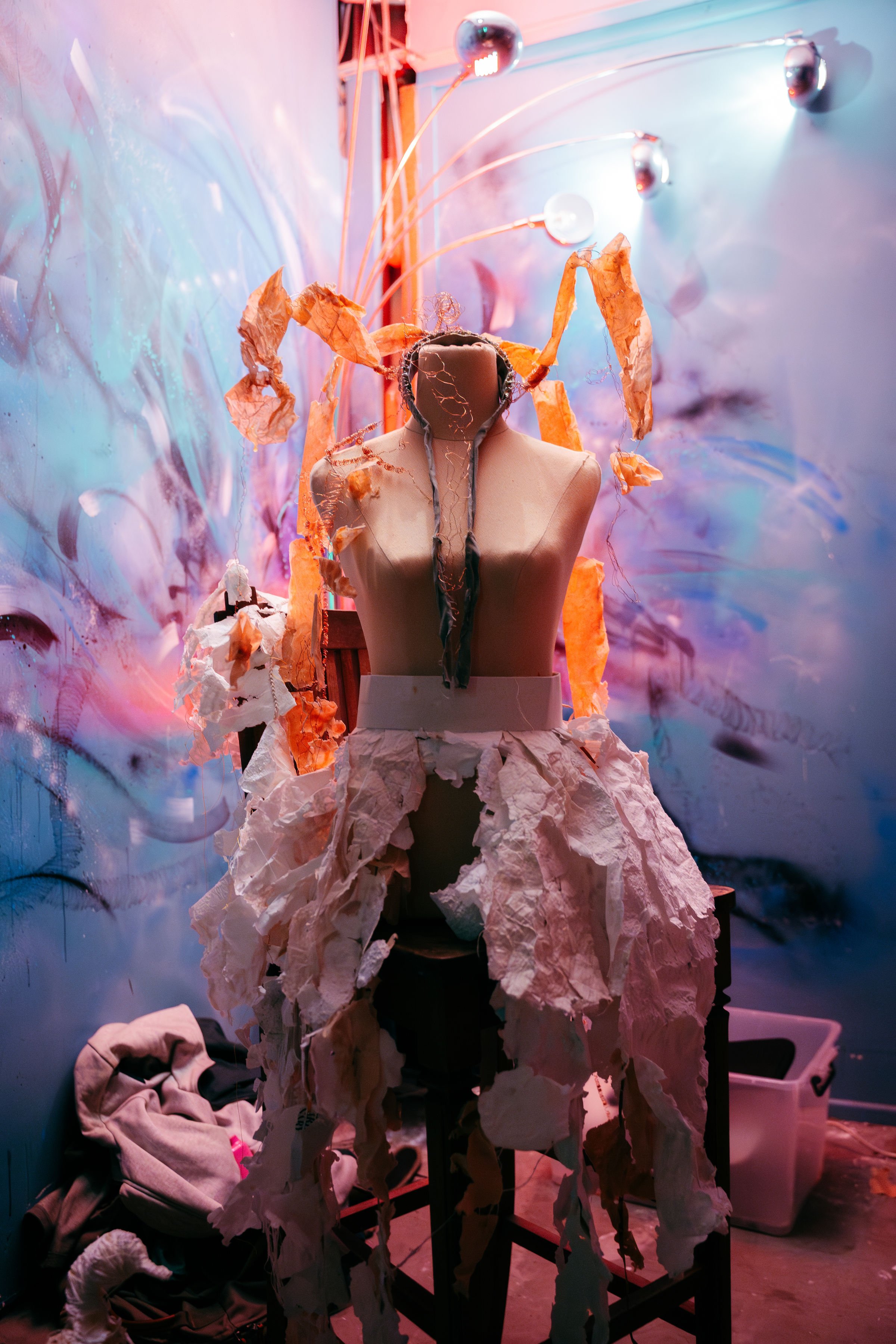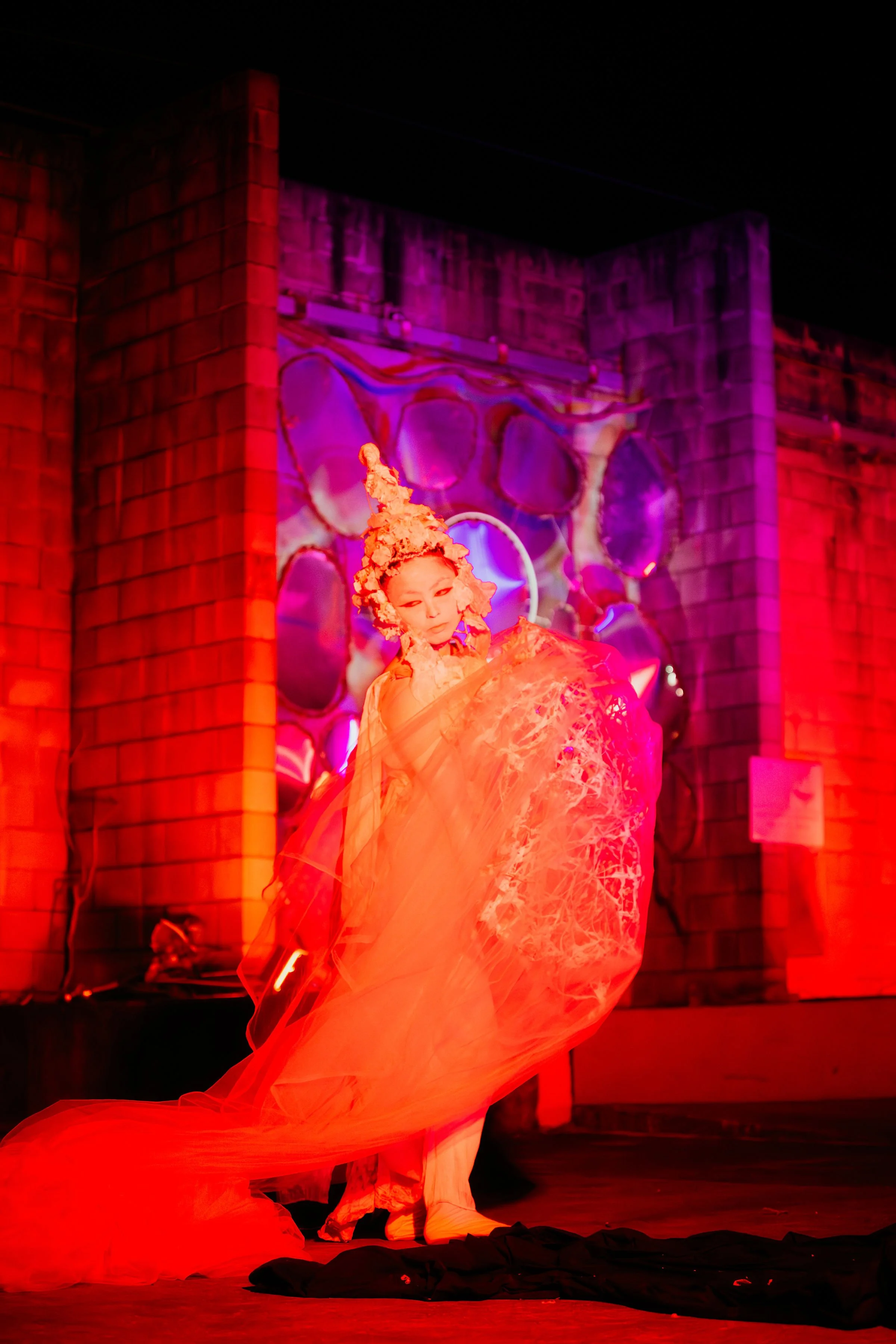 Delivered wearable artworks and stage props for multi-disciplinary creative event at Yeerongpilly Paint Factory.